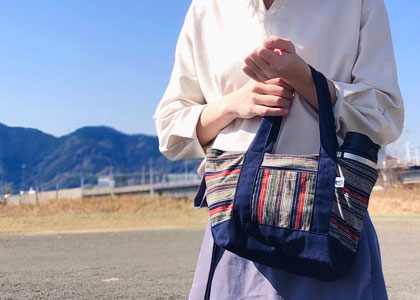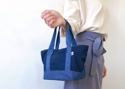 柔らかく優しい風合いの遠州織物でつくるランチバッグサイズのトートバッグ。